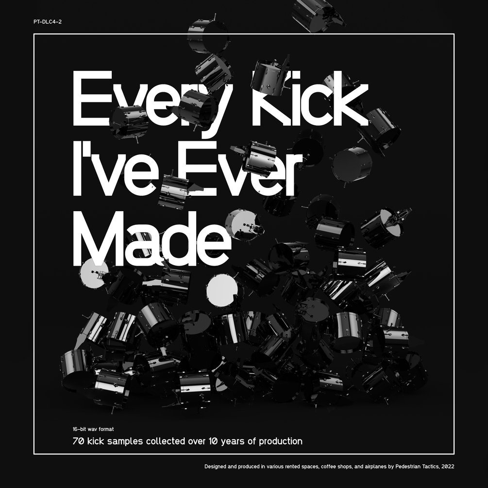 70 kick drum samples directly taken from every track released by Corporate and Pedestrian Tactics over the last 10 years in 16-bit wav format.